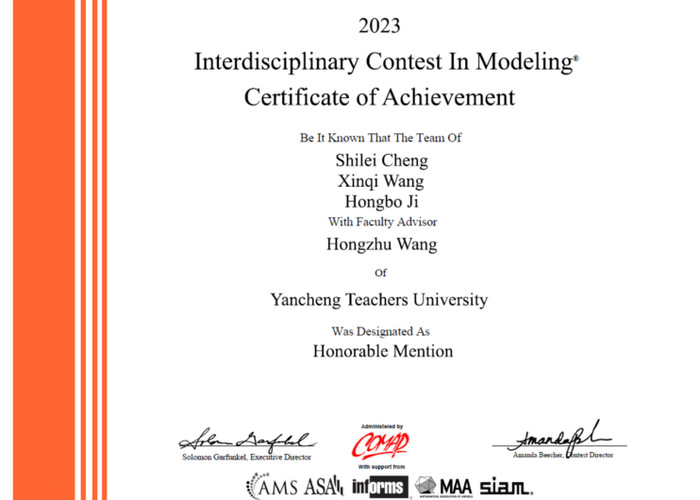 近日,2023年美国大学生数学建模竞赛(MCM/ICM)成绩结果正式公布。本次比赛167.nt必赢官网9名同学组成共3支队伍参赛,2支队伍获得了国际二等奖(H奖),在此表示热烈祝贺!