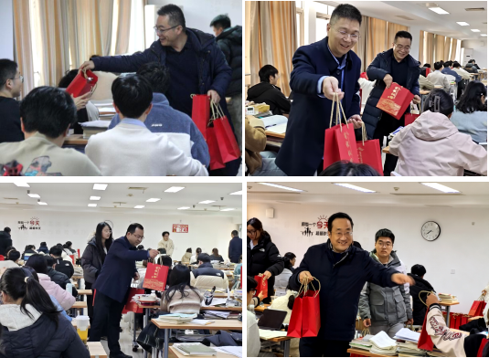 院长王作雷勉励考研学子,考研是意志力与综合能力的全面检验,鼓励大家坚定信念,坚持到底,全力以赴完成最后的冲刺随后,与会领导和老师们共同为考研学子发放了精心准备的考研上岸加油包”,每一份礼都饱含着学院师生最真挚的祝福,为冬日注入了浓浓的暖意。